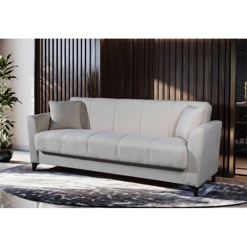 Canapea funcțională și rezistentă, perfectă pentru utilizare zilnică, oferind confort și economie de spațiu.