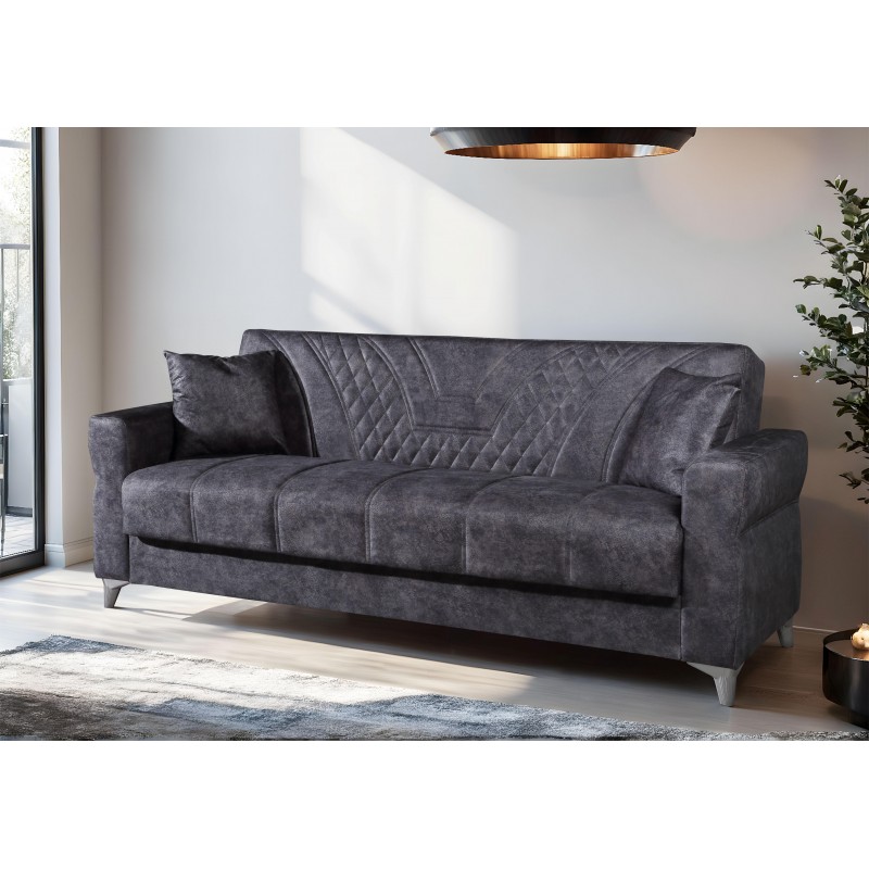 Canapea funcțională și rezistentă, perfectă pentru utilizare zilnică, oferind confort și economie de spațiu.