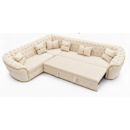 Colțar extensibil de lux bej cu insertii aurii – 300x300 cm