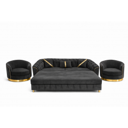 Setul este compus din canapea extensibilă și două fotolii confortabile, fiind ideal pentru livinguri elegante sau pentru spații destinate relaxării și socializării. Canapeaua se transformă rapid într-un pat confortabil, oferind o soluție practică pentru oaspeți.