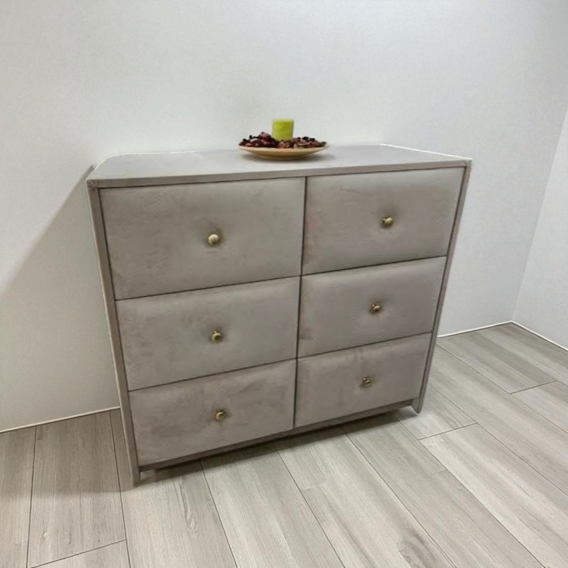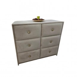 Comoda Era tapitata bej ,6 sertare ,catifea premium.