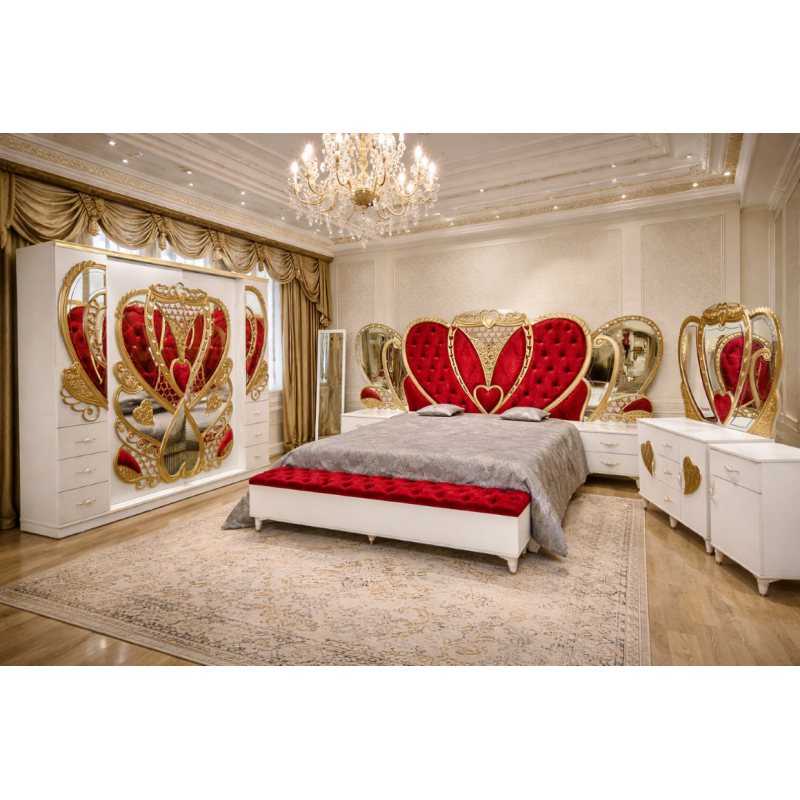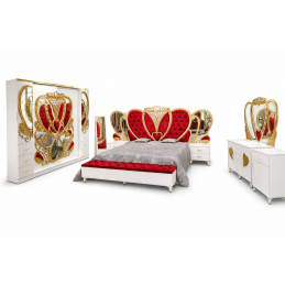 Dormitor Royal Rosu Gold+ Saltea 180x200 cm -9 piese
