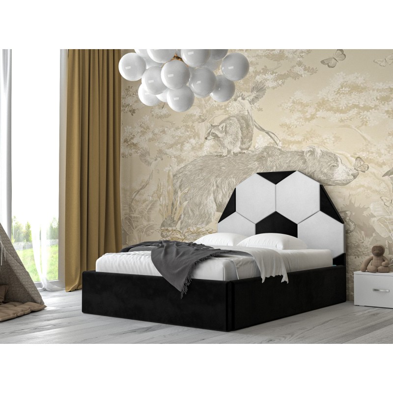 Pat tapitat copii Minge alb/negru, Catifea premium 140x200 cm.