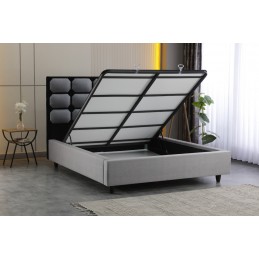 Pat tapitat Atena gri/negru premium , somiera dubla , lada depozitare 160x200 cm.