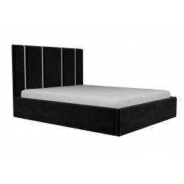 Pat tapitat David negru cu insertii argintii 160x200 cm , catifea premium.